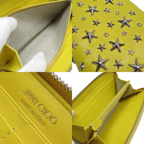 豪華で新しい ジミーチュウ Jimmy Choo 長財布 スタースタッズ レザー X金属素材 イエローxシルバー 定番人気 今日の超目玉
